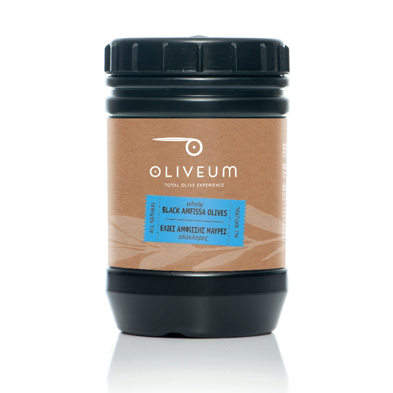 Συστατικά: Ελιές Μαύρες Αμφίσσης ολόκληρες, άλμη, ξύδι από κρασί, Εξαιρετικό Παρθένο Ελαιόλαδο